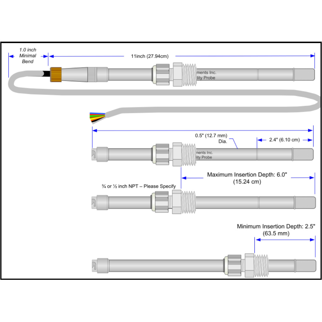 | Custom Fittings Available | Standard ½" NPT insertion, adjustable insertion lengths, optional fittings |