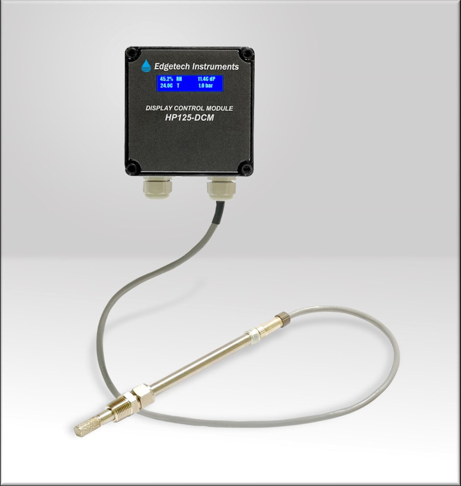 A: The HP125 can be paired with the optional HP125-DCM Display Control Module or used with Edgetech’s SENTRY series for alarm and monitoring functions in compressed gas systems.
